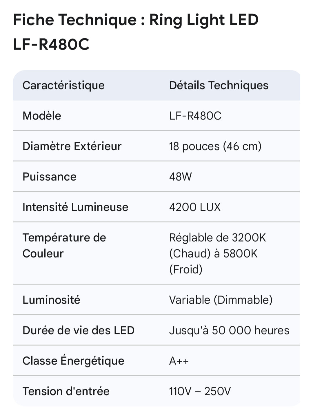 Ring Light LED Professionnelle 18" (46cm) – LF-R480C